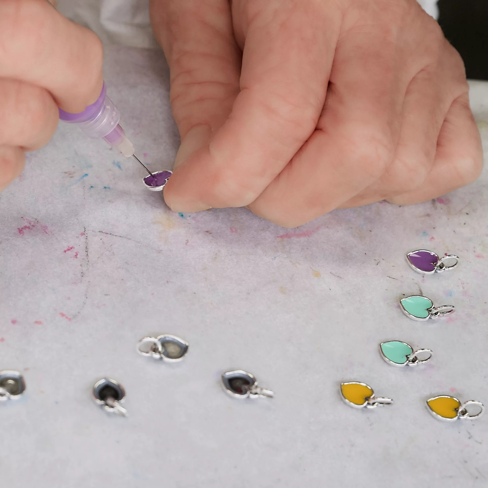 Available in six colors Blue, Green, Pink, Purple, Red and Yellow Enamel