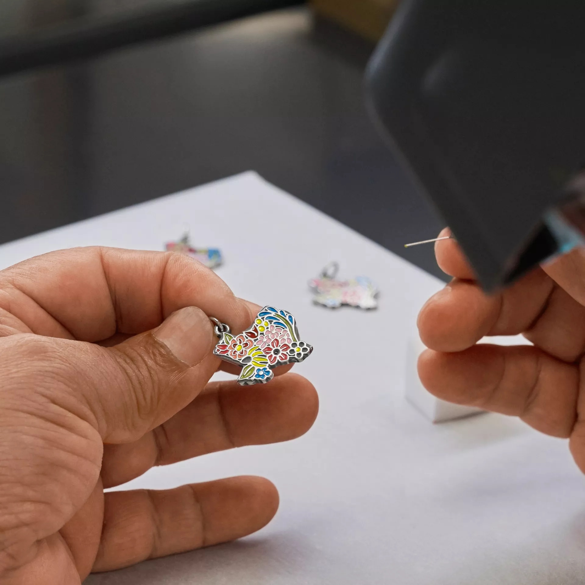 Blue, Coral, Green, Orange, Light Pink, Red, White and Yellow Enamel