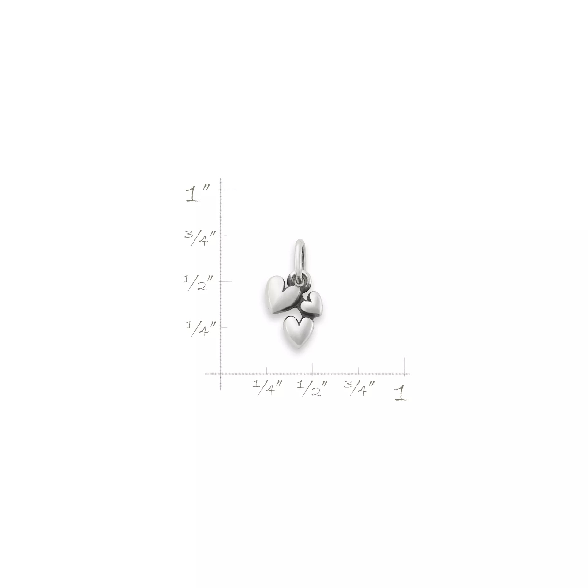 A trio of hearts cascades down this sterling silver charm to provide a symbolic gathering of love – whether representing a family, friends, pets or heavenly loved ones. Its puffed silhouette is bursting with style and fun. The three hearts in small, medium and large sizes appear to float together whichever way you turn. Use it as a dangle ring charm to add movement to a chain, charm holder necklace, bracelet or anklet. This heart charm coordinates back to our Gathered Hearts Ring for a cohesive look.