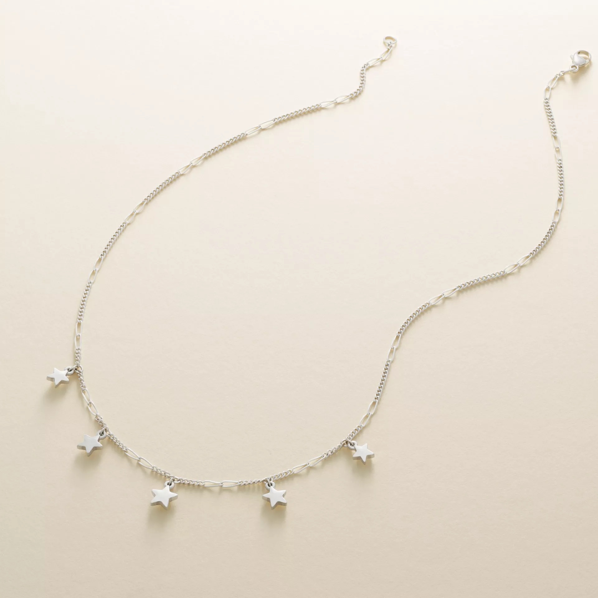 Inspired by the beauty of a starry night sky, our Star Drops Necklace adds graceful movement to any look. Made from sterling silver, the necklace features five individual silver stars attached to a beautiful chain that sparkles and catches the light when it moves.